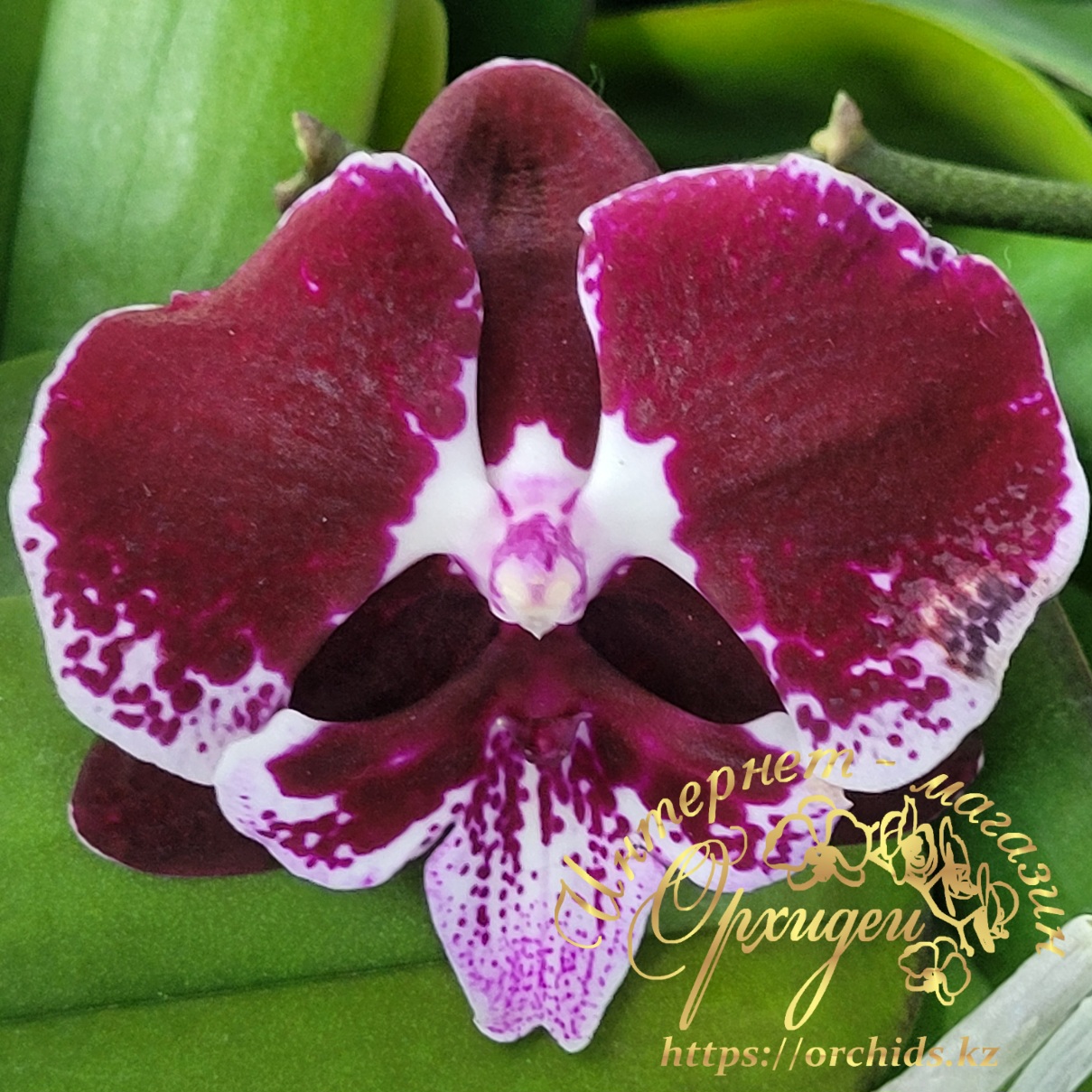 Phal. Allura Dumas – эффектный фаленопсис с выразительным контрастным окрасом, который сразу притягивает взгляд. Крупные лепестки насыщенного бордово-винного оттенка словно расписаны вручную: бархатистая текстура плавно переходит в светлую кайму с изящными крапинками, создавая живой, «художественный» рисунок.
