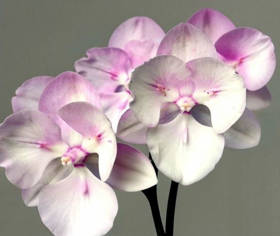 Phal. Tourmaline — редкий мутант спиннер-бабочка, в котором природа словно экспериментирует с формой и симметрией. Лепестки перекручиваются, образуя эффект «вращающегося» цветка, а мягкие оттенки жемчужно-белого и акварельно-розового придают ему почти эфирное очарование.